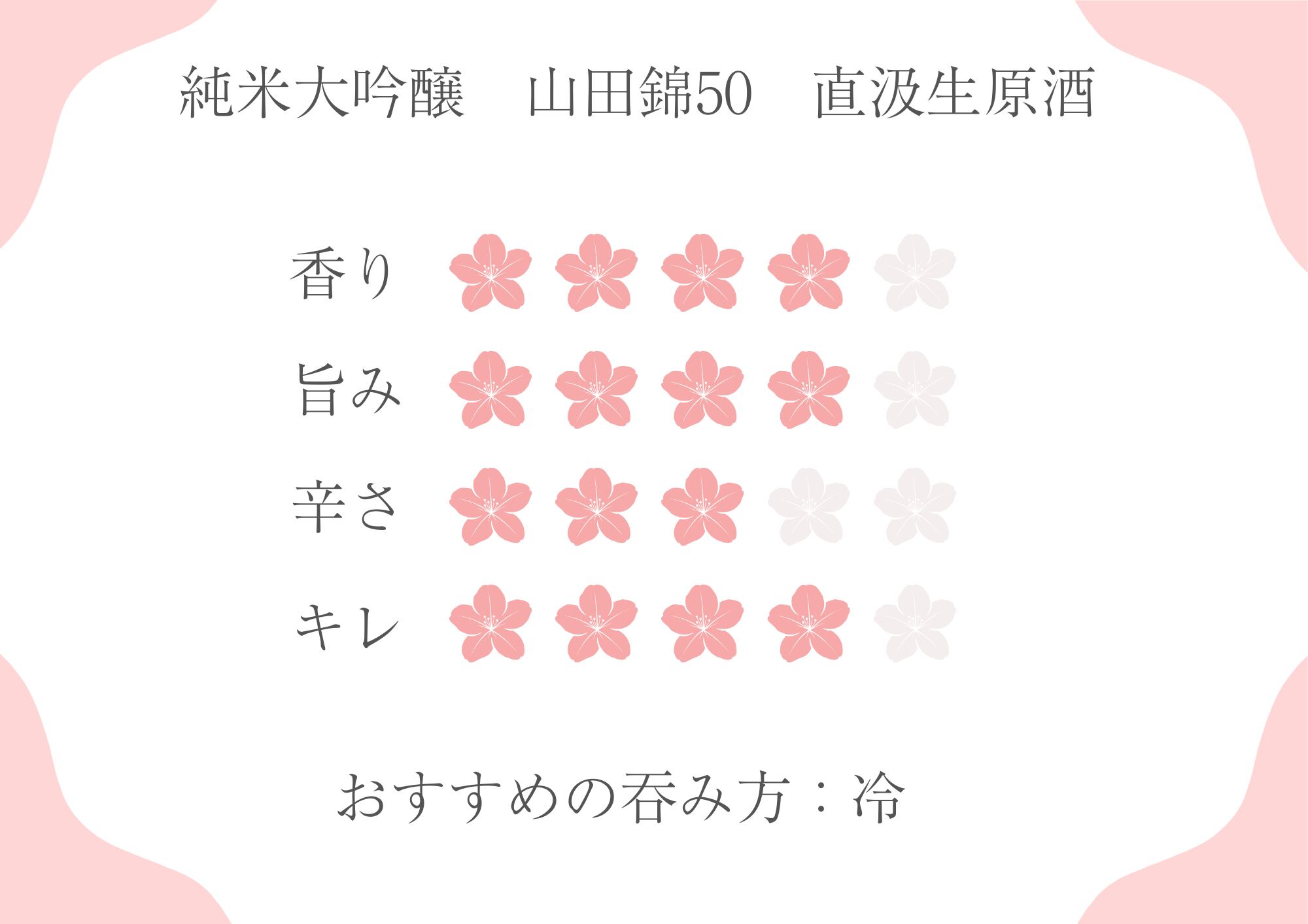 今までも販売しておりました山田錦50ですが、新たに直汲生原酒をつくりました。