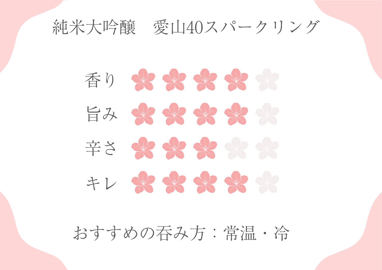 酒米のダイヤモンド愛山を40%まで精米した純米をシャンパン製法で日本酒スパークリングに仕上げました。